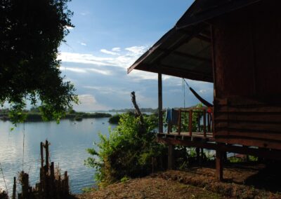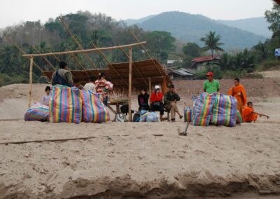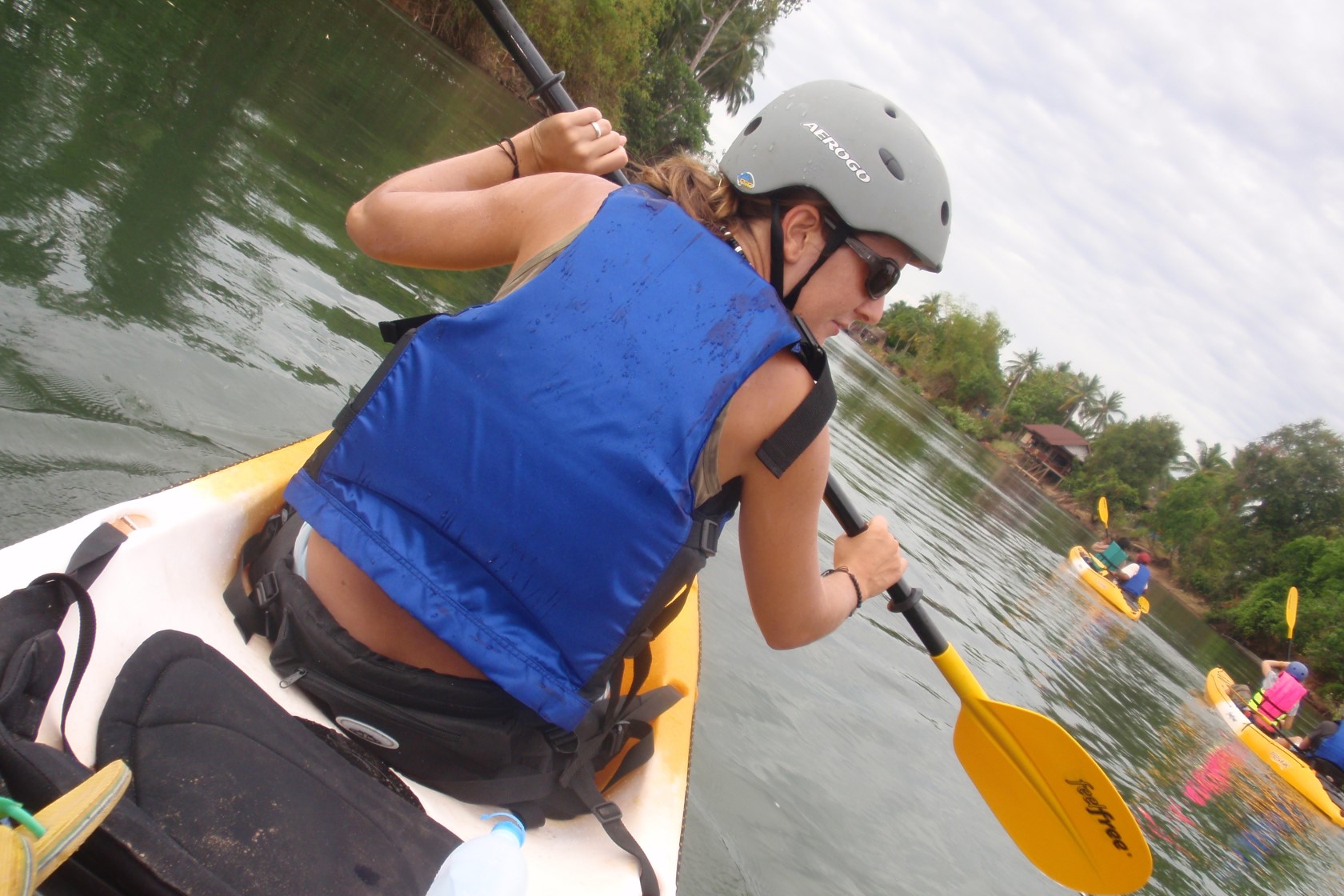 Der nächste Halt war Vientianne. Die Hauptstadt von Laos. Wirklich gefallen hat es uns dort nicht, deswegen sind wir auch relativ zügig weiter. Es zog uns weiter zu den Fourthousand Islands, den Si Phan Don. Der Entspannungsort für Langzeitreisende. Ein paar Tage Hängematte, lesen und einfach geniessen war unser Programm. Unser Zimmer für Fr. 2.50/Nacht war eher spärlich, dafür mit Top Aussicht direkt am Fluss. Nebenbei haben wir noch eine Kajak-Tour unternommen. Die Truppe war super, der Guide furchtbar. Er quasselte uns den ganzen Tag voll in einem Englisch, das nicht einmal die Amerikaner verstanden – wir schauten uns nur jedes Mal rätselnd an, was wohl die Message war. Einige Stellen im Fluss hatten es von der Strömung her in sich – auf jeden Fall schafften wir es tatsächlich, uns zu drehen. Der grösste Wasserfall Asiens, gemessen an der Wassermenge und nicht Höhe, war auch Teil des Programms – direkt an der Grenze zu Kambodscha.