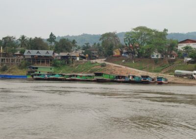 Für den Weg nach Laos haben wir uns für das 2-tägige Slowboat entschieden von Chiang Khong nach Luang Prabang. Mit ca. 100 weiteren Travellern schipperten wir dem Mekong River entlang und bestaunten das einheimische Leben und Treiben am Flussufer. Badende und spielende Kinder, Wäschewaschende Eltern und überall Wasserbüffel. Die Fahrt war definitiv ein Erlebnis – auch landschaftlich. Übernachtet haben wir in einem speziell angelegtem Touristen-Dorf mit Guesthouses, Restaurants etc. Speziell so mitten im Nirgendwo, es war aber ein unterhaltsamer Abend.