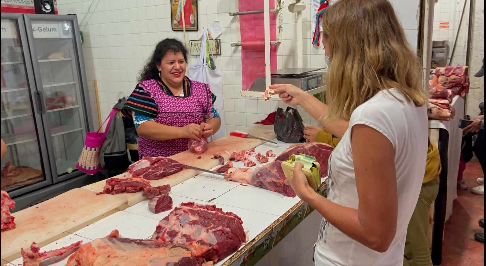 Der Markt fasziniert uns. Auf der einen Seite die Handwerkskunst, welche bunter nicht sein könnte. Egal ob Wollponchos, Tücher, verzierte Lederwaren, gemalte Holzspielsachen, Bernstein-Schmuck – es gibt nichts, was es hier nicht gibt. Das unfassbare sind die Preise: für zwanzig Euro geht man mit einer gefüllten Tüte voller Souvenirs nach Hause. Das Highlight für uns ist der «richtige» Markt. Die Art und Weise, wie Mexikaner einkaufen. Und genau das möchten wir ebenfalls versuchen. Während der zwei Wochen kommen wir (fast) ohne Supermarkt aus. Käse wird in der Käserei gekauft, Gewürze beim Gewürzhändler, Brot in der Bäckerei, Fleisch in der Metzgerei oder dem Markt. Nichts, was es Europa nicht auch gibt. Die Art und Weise und die Tradition ist dennoch anders. Gemüse und Früchte werden auf dem Markt kiloweise in kleine Berge aufgetürmt und schön präsentiert.