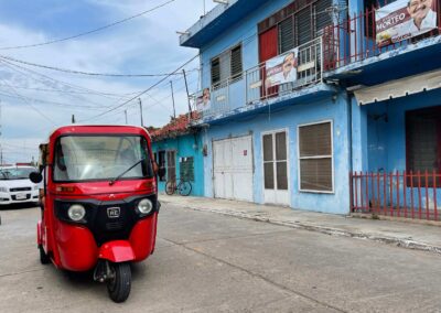 Am kommenden Tag steht Victor vor der Türe. Er hat seinen Freund, Julio, kontaktiert. Mit einem «Tricycle» möchte er uns die Stadt zeigen; kostenlos. Wir nehmen das Angebot an und lassen uns durch die farbenfrohen Gassen chauffieren.