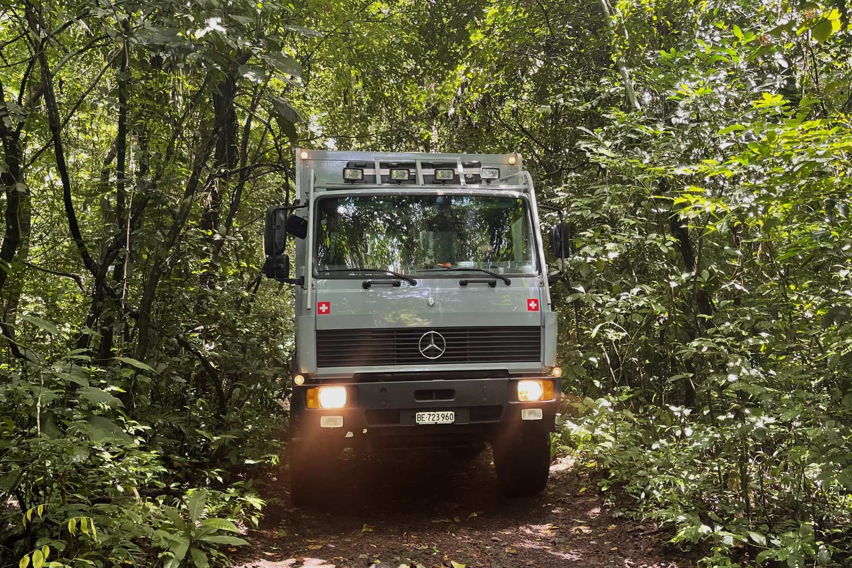 Der Weg führt weiter der Grenzstrasse entlang. Eine erhöhte Vorsicht ist aufgrund Drogenschmuggels und Migration angesagt. Insbesondere, da es ausser Regenwald weit und breit nichts gibt. Die Region ist so isoliert, dass es schwer vorstellbar ist, wie die paar Menschen in den winzigen Dörfern Ihr Leben verbringen. Tankstellen gibt es keine. Diesel wird in Kanistern am Strassenrand verkauft. Die Blicke waren schon freundlicher. Unsere Gefühlslage ist etwas mulmig; allerdings weit weg von ängstlich. Trotzdem sind wir froh, keine Panne zu haben. Zwei Militärposten passieren wir, welche uns freundlich durchwinken, sobald Sie sicherstellten, dass wir kein Transporter sind. Die Strasse ist in schlechtem Zustand. Nach dem Abzweiger zu den Las Guacamayas nimmt sich der Urwald immer mehr von der Strasse zurück. «Ob diese Mittellinie wirklich mal in der Mitte war?» frage ich mich. Rechts ist die Strasse teilweise einfach weggebrochen. Einmal mehr gilt: Wer am Steuer sitzt, sollte die ganze Konzentration aufs Fahren gelegt haben. Es sind lange vierzig Kilometer, bis wir im Dschungelparadies ankommen.